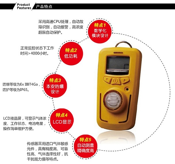 傳感器采用進口電化學式傳感器,檢測靈敏度高,安全可靠,抗干擾能力強;