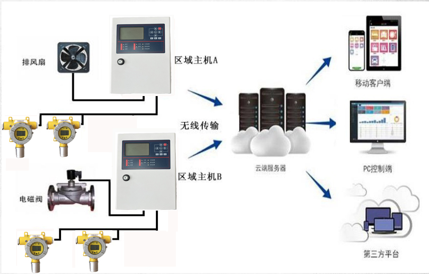整個(gè)系統(tǒng)由云監(jiān)控氫氣報(bào)警器和點(diǎn)型可燃?xì)怏w探測器、服務(wù)器端、用戶手機(jī) APP或PC端三個(gè)部分組成。整套系統(tǒng)是采用無線網(wǎng)絡(luò)為傳輸載體,不需要傳統(tǒng)的氣體報(bào)警主機(jī)來接收報(bào)警信息,可通過專門定制的PC端控制頁面,來實(shí)時(shí)了解各個(gè)點(diǎn)位的情況,而且設(shè)備安裝使用者也能及時(shí)知道設(shè)備運(yùn)行情況,不限地域,無論你在什么地方只要有運(yùn)營商網(wǎng)絡(luò)覆蓋的地區(qū)都可以隨時(shí)通過 APP端或 PC端了解設(shè)備詳情,具有短信通知功能(可選)和電話通知功能(可選)手機(jī)接聽報(bào)警信息的功能。解決了傳統(tǒng)氣體報(bào)警器的地域局限性和信息時(shí)效性。