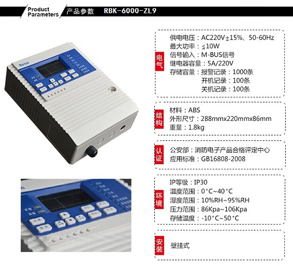 •RBK-6000-ZL9型氣體報(bào)警控制器設(shè)計(jì)遵循國(guó)標(biāo)GB16808-2008。•采用M-BUS兩總線通訊方式負(fù)載容量≤9路,安裝布線簡(jiǎn)單經(jīng)濟(jì)。