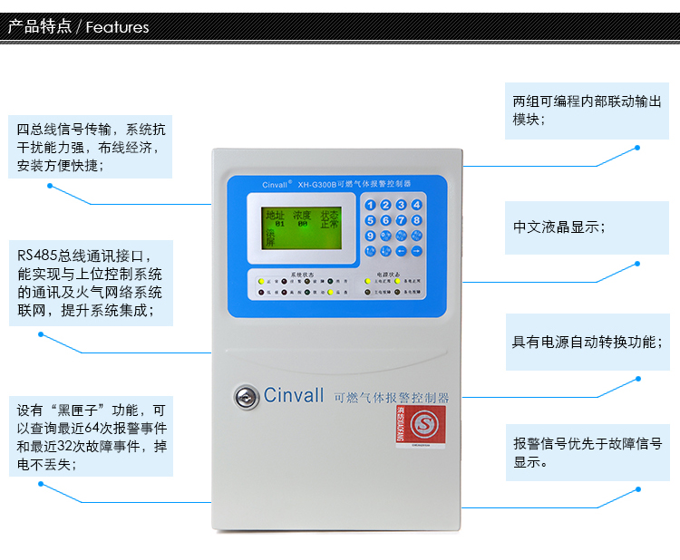 XH-G300B可燃?xì)怏w報警器,可燃?xì)怏w探測儀,可燃?xì)怏w檢測器:鴻安電子出品的總線制RS485氣體報警系統(tǒng),開關(guān)量煤氣探測器和32通道氣體報警控制器共同組成。產(chǎn)品的設(shè)計符合國家標(biāo)準(zhǔn)GB16808-2008《可燃?xì)怏w報警控制器》的要求,以及GB15322.1-2003《可燃?xì)怏w探測器 第1部分:測量范圍0-100%LEL的點(diǎn)型可燃?xì)怏w探測器》的要求,擁有“產(chǎn)品型式認(rèn)可證書”“防爆合格證”“計量認(rèn)證”“質(zhì)量管理體系認(rèn)證”“檢驗(yàn)報告”等等齊全的資質(zhì)證書,屬于國家一級氣體安防設(shè)備,敬請放心使用。