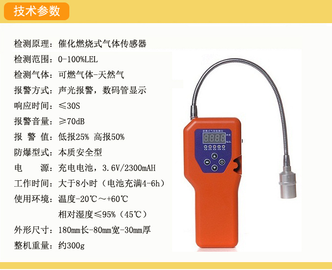 本產(chǎn)品是一款單一可燃?xì)怏w檢測儀,主要用來檢測天然氣、液化氣,屬于一款便攜式燃?xì)庑孤z測儀,常用在:燃?xì)夤、加氣站、餐飲酒店、鍋爐房、燃?xì)廛囬g、燃?xì)夤迏^(qū)等等環(huán)境下查漏所用,可有效預(yù)防可燃?xì)怏w爆炸。XH-B100A整機(jī)設(shè)計(jì)精巧,帶有加長柔性探桿,手握方便,軟管的設(shè)計(jì)可以實(shí)現(xiàn)無死角探測,燃?xì)廛、燃(xì)夤艿揽v橫交錯的地方都可以靈活作業(yè)。