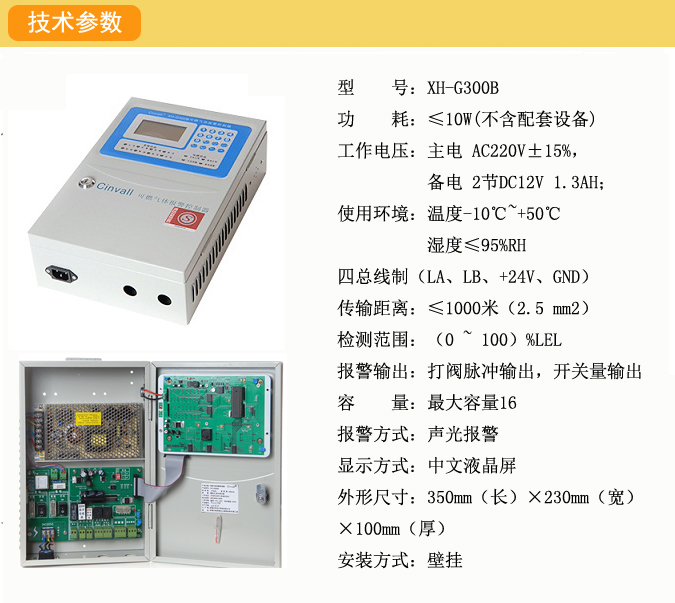 系統(tǒng)組成:氣體報(bào)警控制器XH-G300B、點(diǎn)型可燃?xì)怏w探測(cè)器XH-G800A