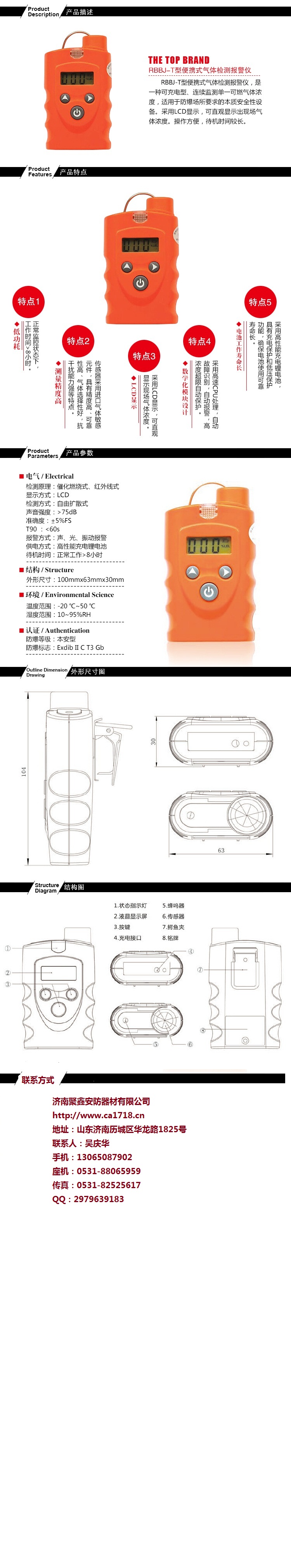 RBBJ-T燃?xì)庑孤z測(cè)儀的主要性能:
