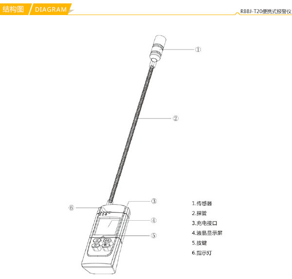 •LCD顯示,可顯示檢測(cè)氣體類(lèi)型、濃度值、百分濃度比、電池電量以及報(bào)警儀的工作狀態(tài)。
