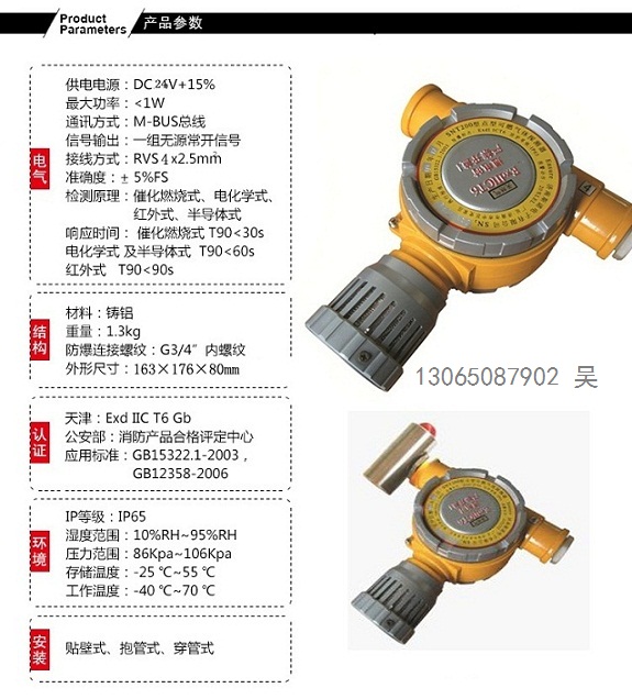 二、液化氣探測器的技術(shù)參數(shù):