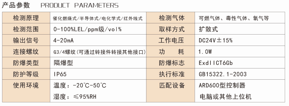 探測器采用防爆結(jié)構(gòu)設(shè)計(jì),適用在多種復(fù)雜惡劣環(huán)境下長期工作;
