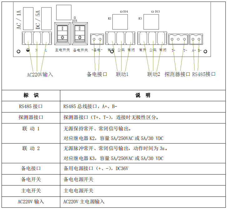 聯(lián)動輸出:兩組繼電器輸出(容量:5A/250VAC 或 5A/30 VDC)其中一組 為保持型常開常閉,另一組脈沖型常開常閉;