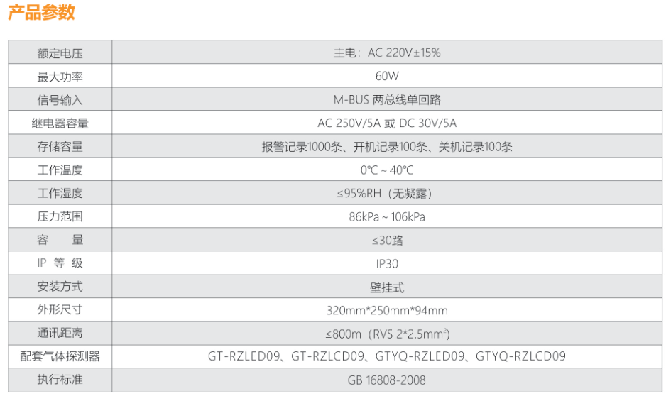 供電電壓AC220V,同時提供給探測器DC24V電壓;