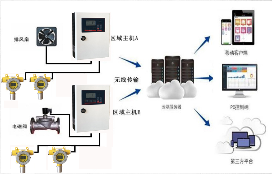 該部分是從來接收探測器上傳過來的氣體濃度信號用的,并具有對信號進行分析顯示,如果超過系統(tǒng)預設報警值時就會發(fā)出聲光報警警示,同時還可以聯(lián)動外圍設備,比如風機、排風扇或者大型的防爆報警燈?刂破髯詭潆娖鸬綌嚯姾笙到y(tǒng)可以持續(xù)工作,保證企業(yè)生產安全。