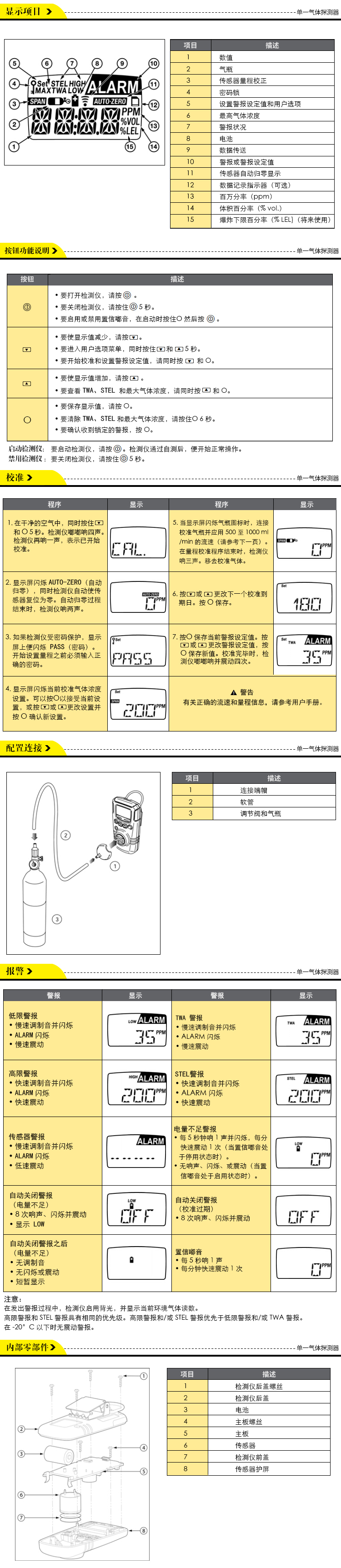 ◆ 隨濃度變化的報(bào)警聲頻信號(hào)。