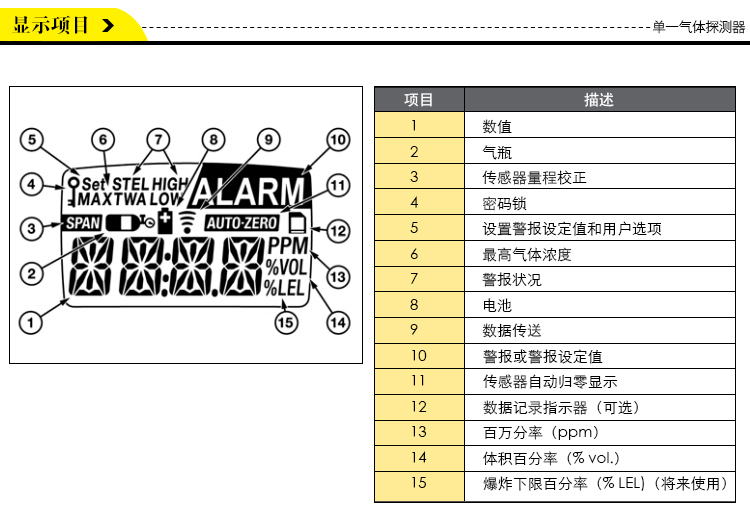 ◆其它報警:低電池電量;關(guān)閉警告;傳感器故障,超量程